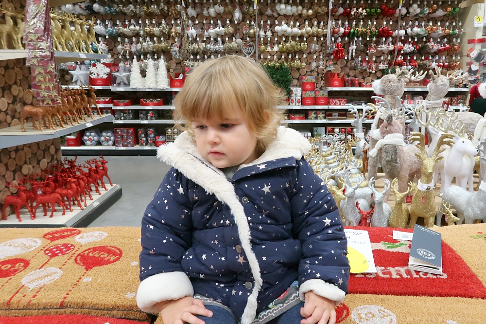 We had so much fun running around the shop, looking at all the pretty decorations and playing with the Christmas toys. The other shoppers must have thought we were some Christmas crazed lunatics with our trollys bursting with Christmas decorations, lights, tinsel… literally everything you can imagine, including a Merry Christmas door mat! We also had a camera crew (from Mumsnet) following us around, so we definitely stood out!